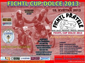FICHTL CUP DOLCE 2013 - 18.5.2013 4-hodinový terénní vytrvalostní závod týmů na motocyklech JAWA 50. Přijeďte se podívat na CRAZY závodění "opravdových" závodníků na motorkách malých kubatůr v terénu. Střídání jezdců týmu, doplňování paliva, rychlé opravy, za které by se nemuseli stydět ani mechanici Formule 1 !!! 2. závod započítán do seriálu www.fichtlpratele.cz - KVĚTOŇ CUP, poháru KVĚTOŇ, zemědělská technika, PŘEŠTICE!!! Více na www.fichtlpratele.cz!! Související závody: 1. závod FICHTL CUP VSTIŠ 2013 – 27.4.2013 - 3-hodinovka!! 3. závod FICHTL CUP PŘÍCHOVICE 2013 - 29.6.2013 - 3-hodinovka!! 4. závod FICHTL CUP PŘEŠTICE 2013 - 14.9.2013 - 4-hodinovka!! 5. závod FICHTL CUP ŽEROVICE 2013 - 12.10.2013 - 3-hodinovka!! Začátek: 11:00 Konec: 15:00 Kategorie: závody Kraj: plzeňský web akce