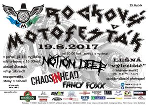 Zveme příznivce rocku a motorek na 9. ročník Motofesťáku, který se bude již tradičně konat na výletišti v Lešné u Valašského Meziříčí. Živá hudba, pití a občerstvení zajištěno. Stany sebou! Pro účastníky předcházející vzpomínkové vyjížďky v 16:30 je vstup zdarma.